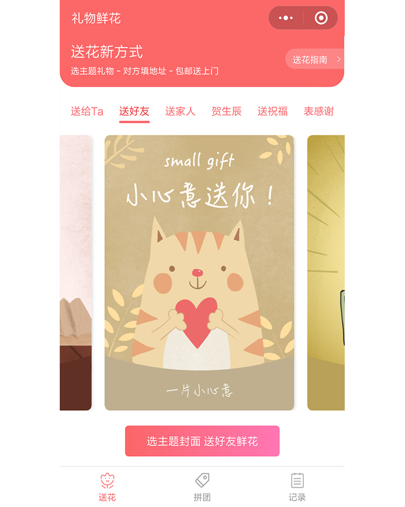 該微信公眾號是專業的鮮花網絡購物平臺,應用開發功能模塊有首頁、拼團、記錄等等。